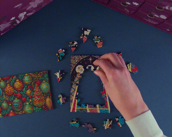 Featuring a variety of popular puzzle designs including our Grid, Free Form and Shaped cuts with whimsies and Extra Difficult puzzles. Including an array of images from different artists our customers love and exclusive Advent Calendar packaging designed by us. This wooden puzzle Advent Calendar will make a unique gift for jigsaw puzzle lovers and a treasured keepsake for years to come.