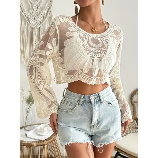 Handcrafted with delicate crochet artistry, our vintage lace knit cardigan is more than just a cover-upâitâs a whisper of nostalgia, a touch of bohemian elegance, and your perfect companion from beach days to city strolls.